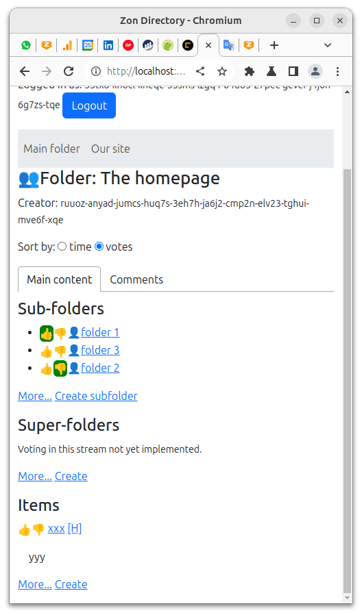 For example, on the image above, there are folders “folder 1”, “folder 2”, “folder 3” inside the folder “The homepage”. Some items were votes for/against.